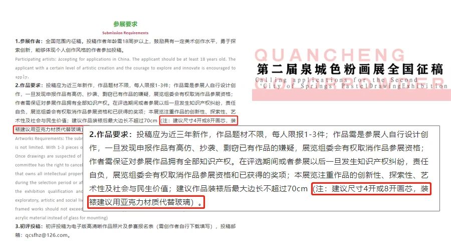 從畫作者認(rèn)識到反光的玻璃或亞克力板看著有點像照鏡子,對于畫面來講,會有所減分開始,越來越多的畫展征稿對傳統(tǒng)裱畫蓋板玻璃“反射”、“易碎”、“質(zhì)量重”等問題提出了建議性要求,例如“泉城色粉畫展全國征稿”。